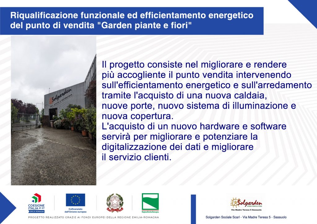 Con il progetto presentato sul Bando PR – FESR Emilia Romagna 2021-2027, Azione 1.3.4, la cooperativa ha inteso realizzare un insieme di interventi mirati alla riqualificazione funzionale ed efficientamento energetico del punto di vendita, con una visione integrata che tiene conto di aspetti energetici, ambientali, di sicurezza e di qualità degli spazi di lavoro. L’iniziativa si colloca inoltre nel quadro di sostenibilità regionale, rafforzando la competitività dell’impresa ed il suo ruolo sociale